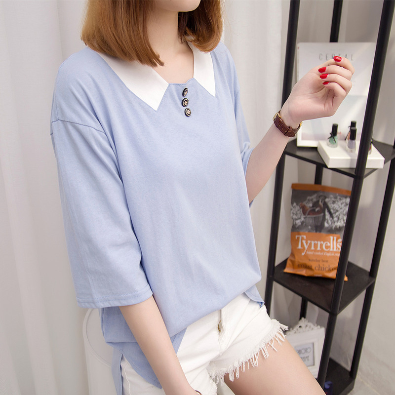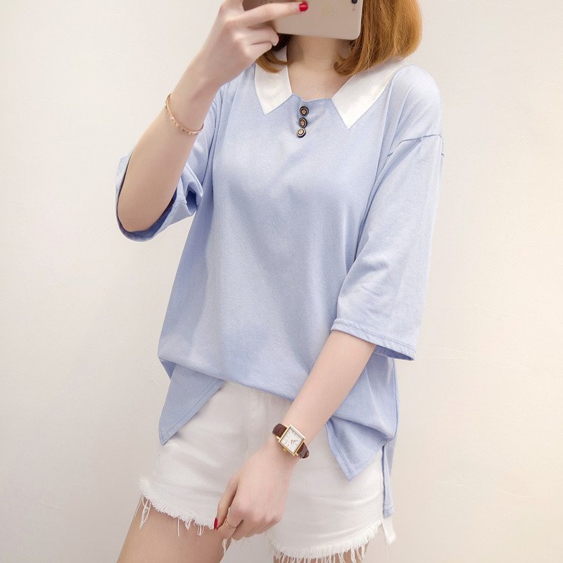/ 女裝夏裝新款女寬松韓版純色短袖t恤女中長袖打底上衣體恤衫