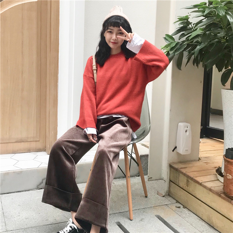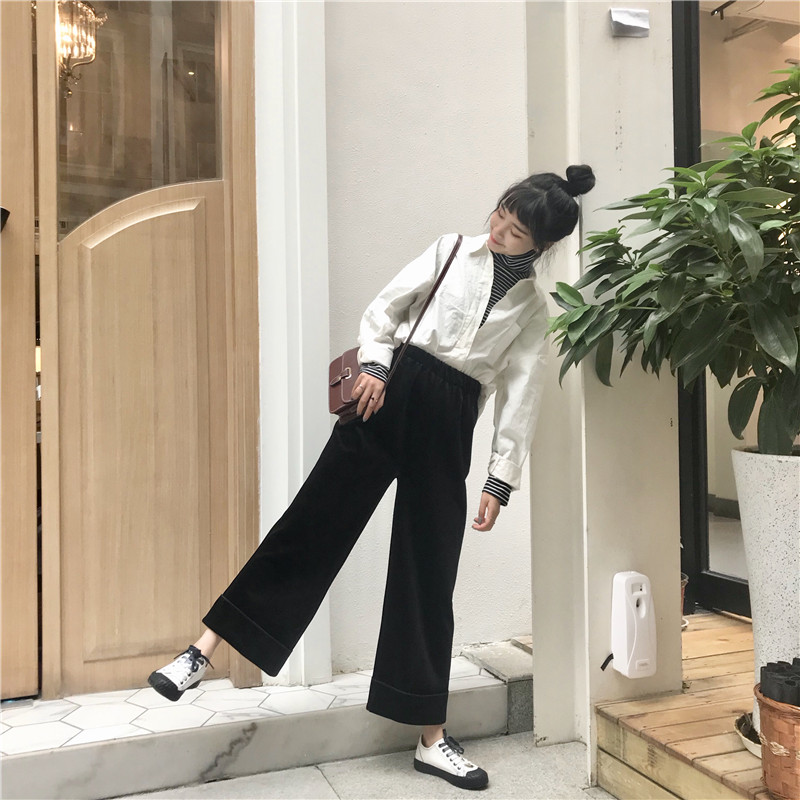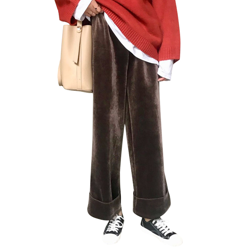 / 秋冬韓版復古寬松百搭加厚天鵝絨闊腿褲高腰直筒褲九分褲休閑褲女