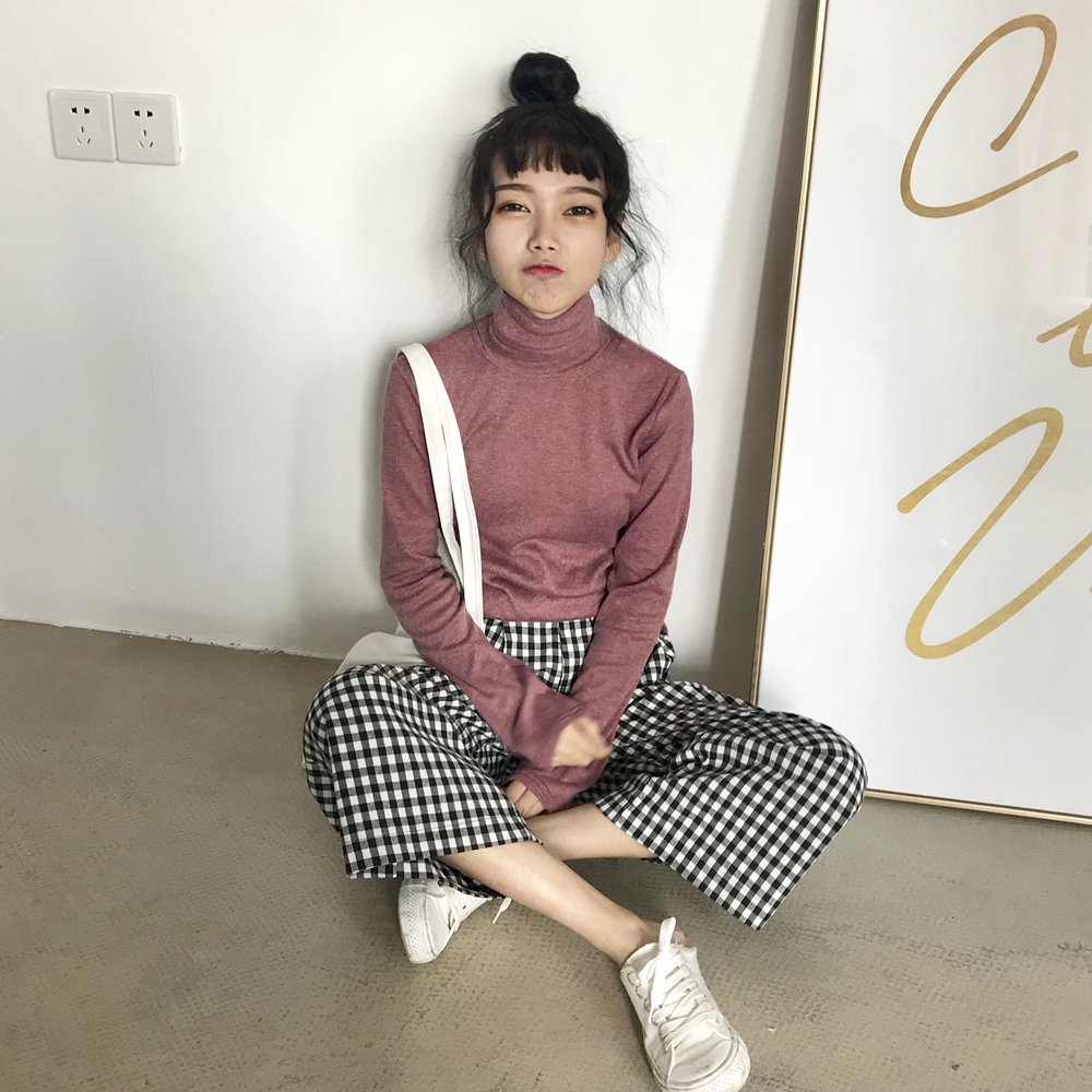 秋季女裝韓版糖果色高領純色氣質彈力修身顯瘦長袖T恤打底衫上衣