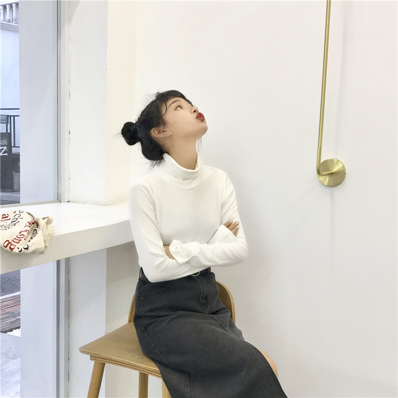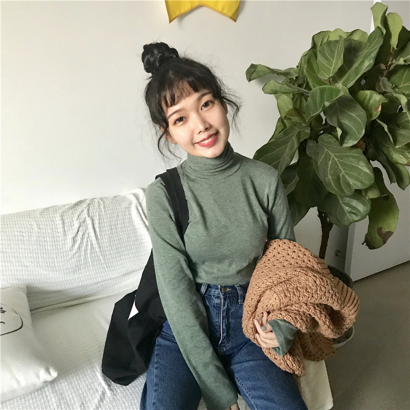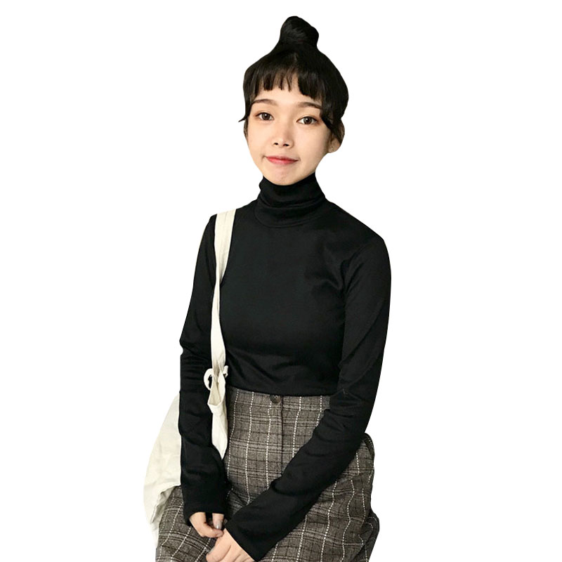 / 秋季女裝韓版糖果色高領純色氣質彈力修身顯瘦長袖T恤打底衫上衣