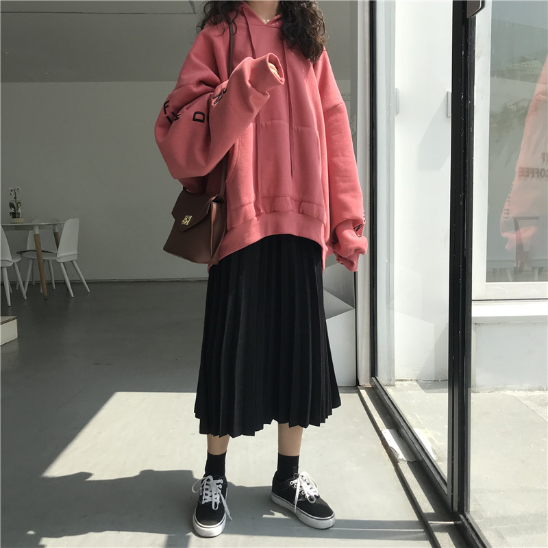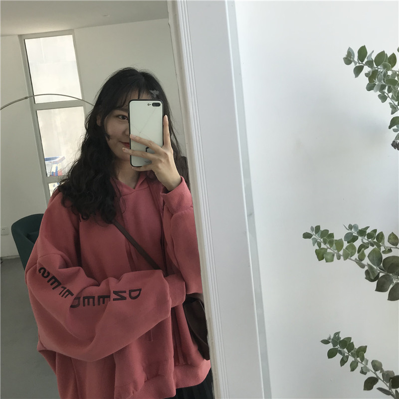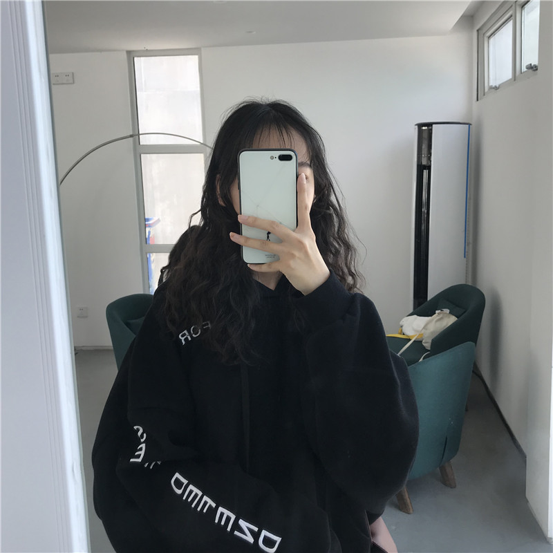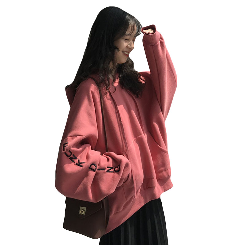 / 冬裝女裝韓版中長款原宿風字母寬松加絨加厚連帽超火衛衣上衣外套