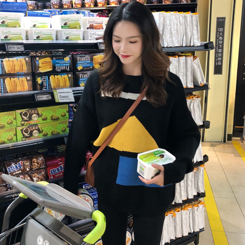 / 秋裝女2018新款韓版學生拼色寬松長袖毛衣時尚慵懶風清新圓領上衣