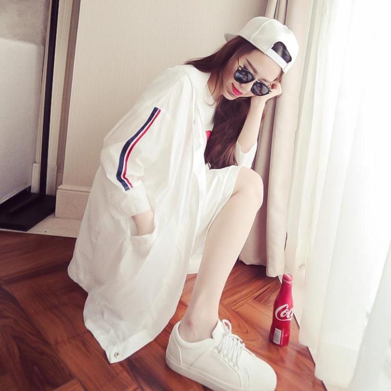 2017韓版寬松防曬衫百搭新款長袖防曬衣女中長款夏季薄外套防曬服