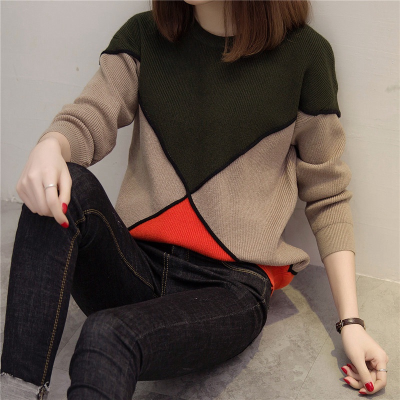 女裝秋裝新款潮針織衫套頭毛衣女打底衫長袖學生上衣韓版寬松