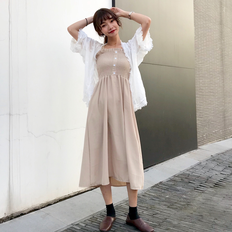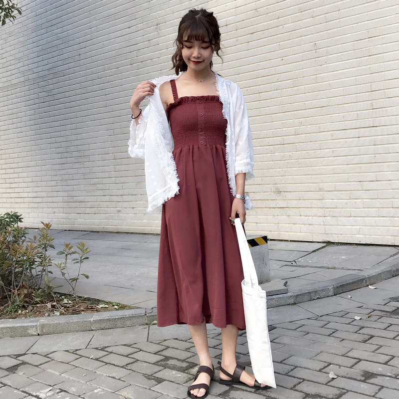 白色防曬衣單件|杏色吊帶裙單件|豆沙紅吊帶裙單件|黑色吊帶裙單件