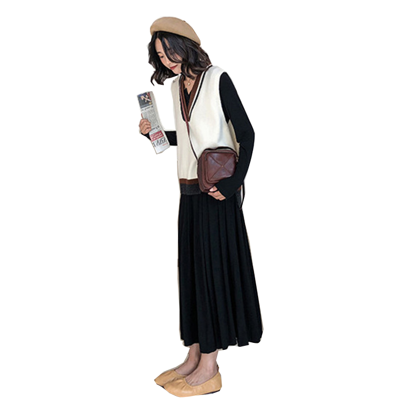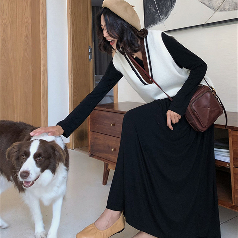 / 毛衣配加連衣裙子女法式氣質桔梗裙復古針織山本風長款兩件套裝冬