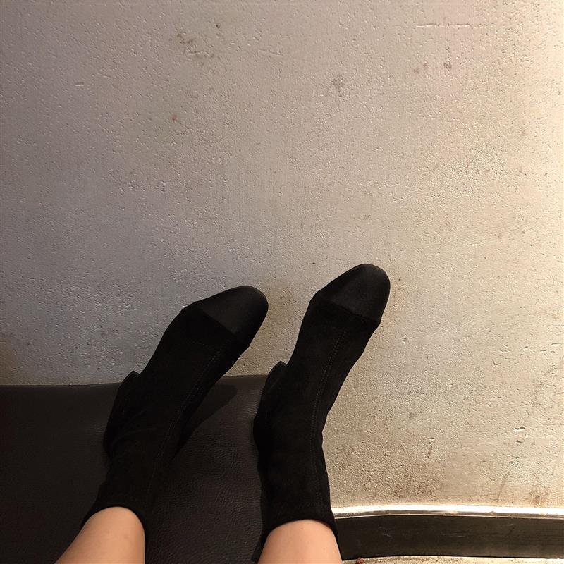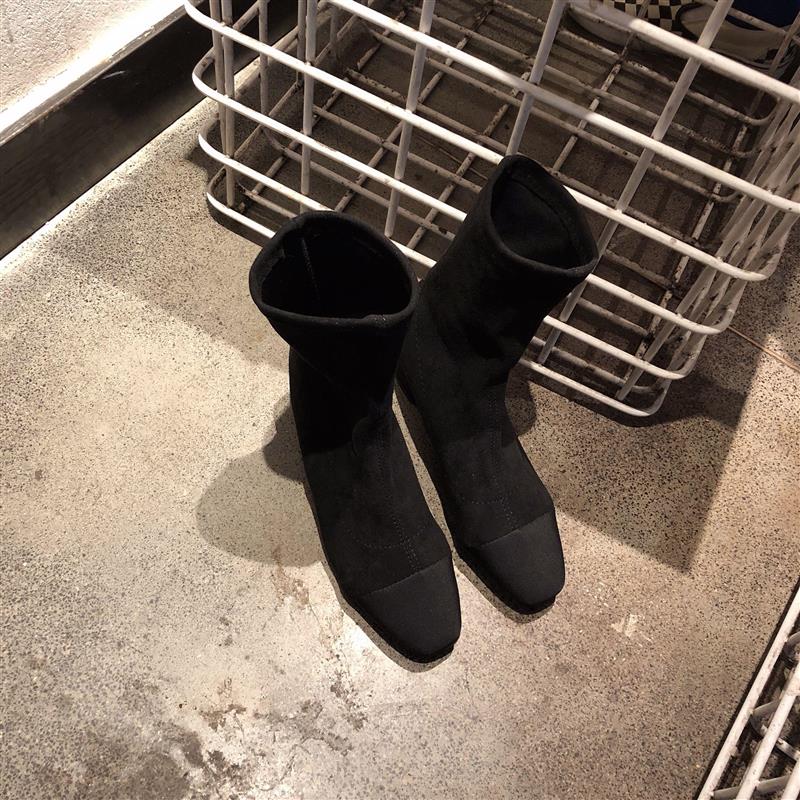 2018新款秋冬襪靴女瘦瘦靴彈力靴粗跟時尚氣質百搭純色中跟短靴潮