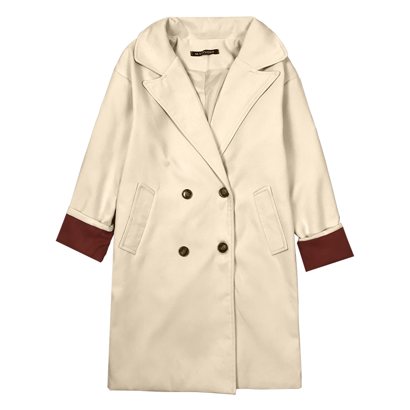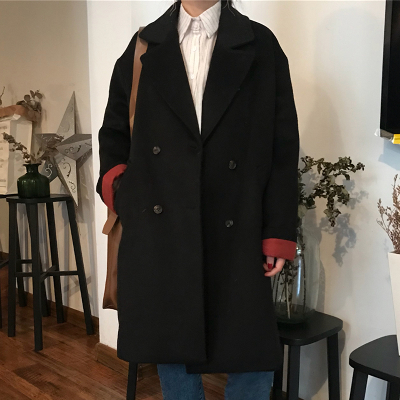 / 2018中長款毛呢外套秋冬女裝新款寬松長袖呢大衣西裝領呢子雙排扣