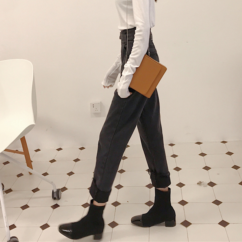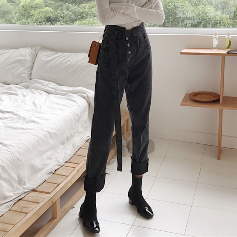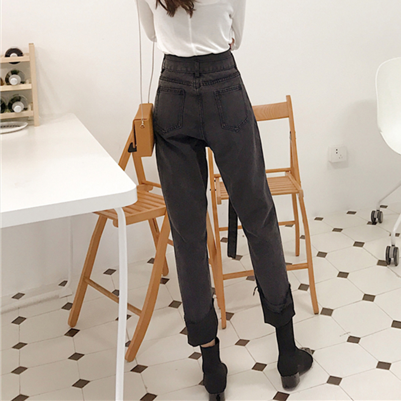 / 怪味少女褲秋冬裝2018新款韓版學生高腰老爹褲寬松顯瘦哈倫牛仔褲
