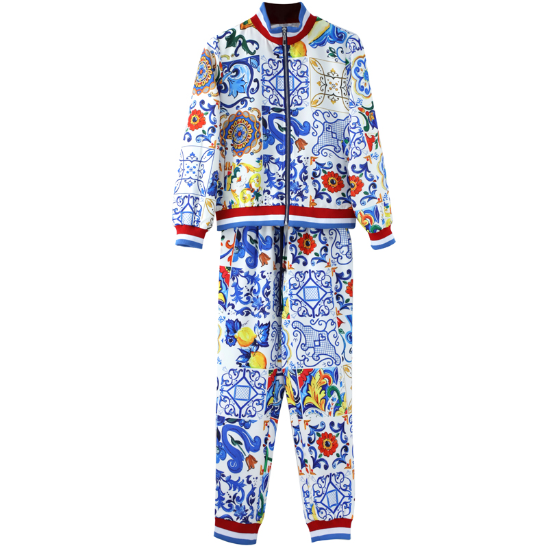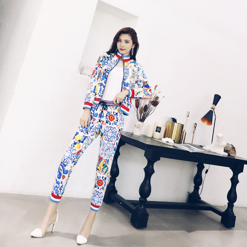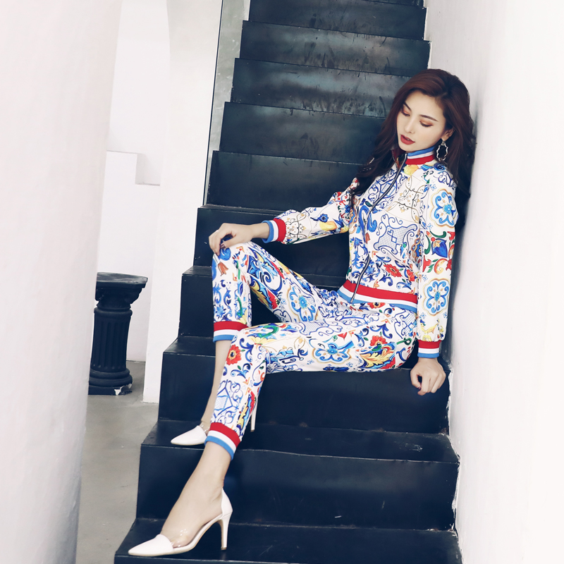 / 名媛氣質2018秋季女新款韓版印花長袖外套小腳褲休閑運動兩件套裝