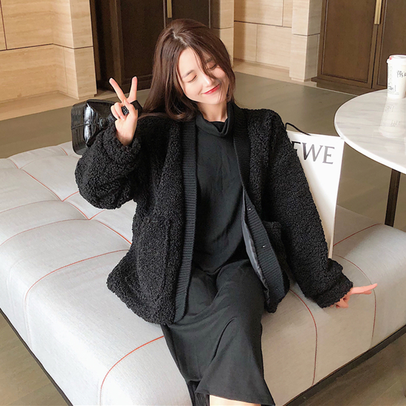 秋冬女裝2018新款韓版百搭羊羔毛開衫學院風寬松V領長袖上衣外套