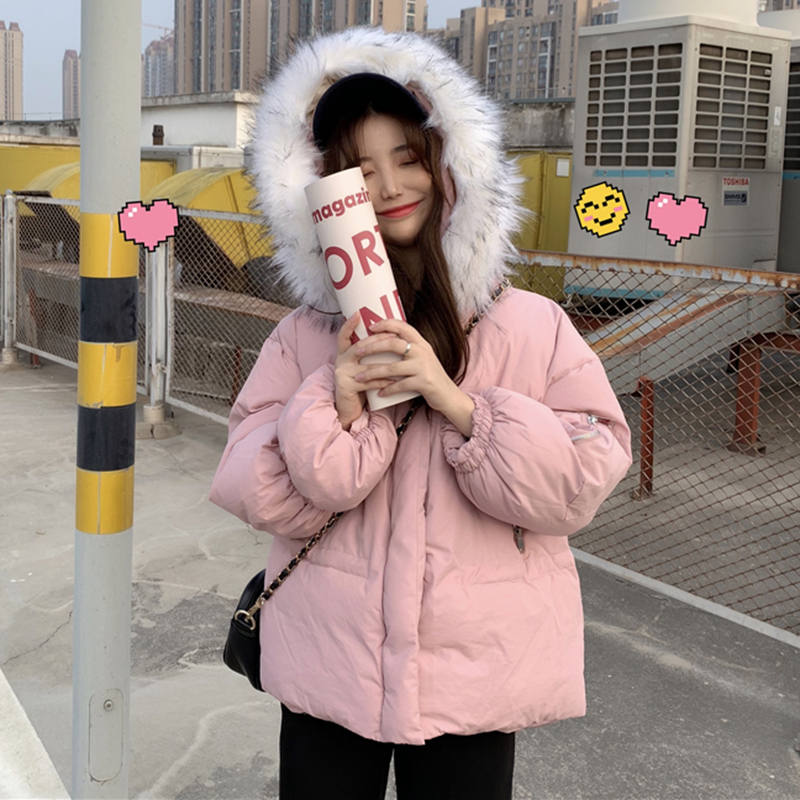 chic風大毛領連帽面包服冬裝2018新款韓版時尚寬松加厚棉衣服外套