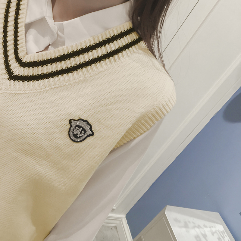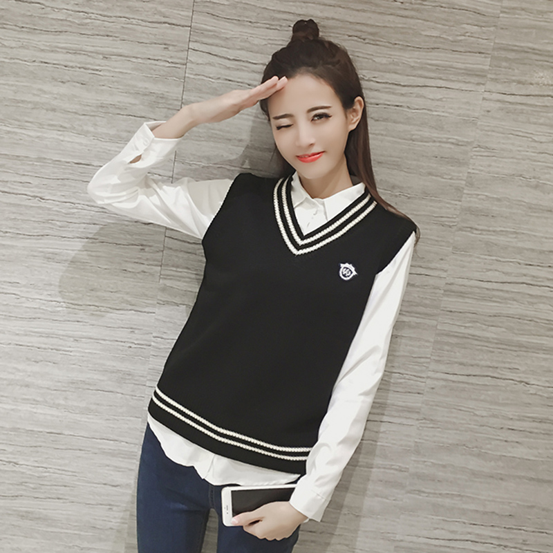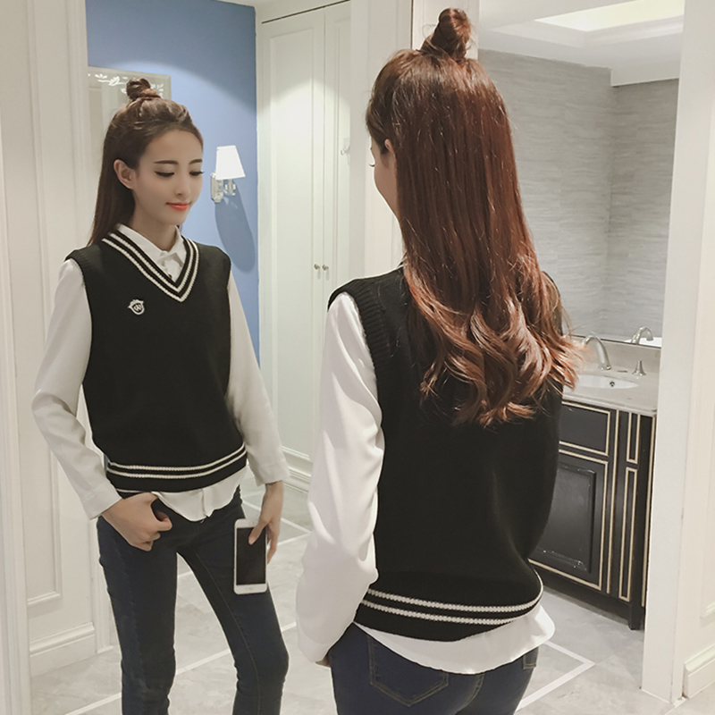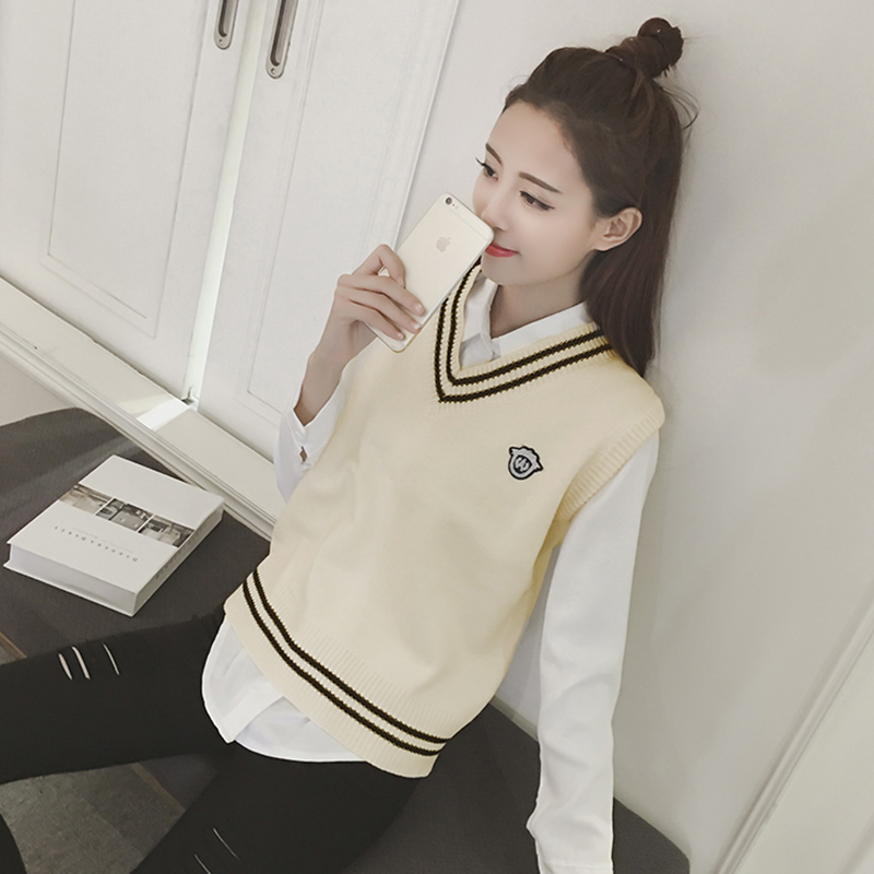 / 學院風毛衣背心女秋冬新款V領寬松外穿針織上衣學生顯瘦復古馬甲