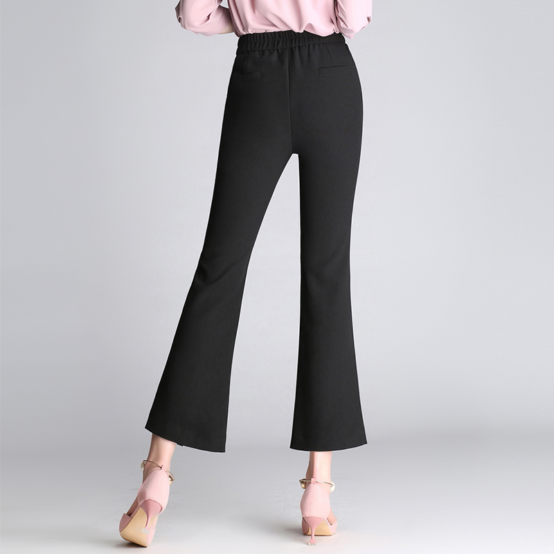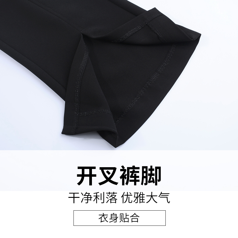 / 高腰微喇叭褲春夏棉麻女褲新款顯瘦黑色九分褲開叉休閑西裝褲