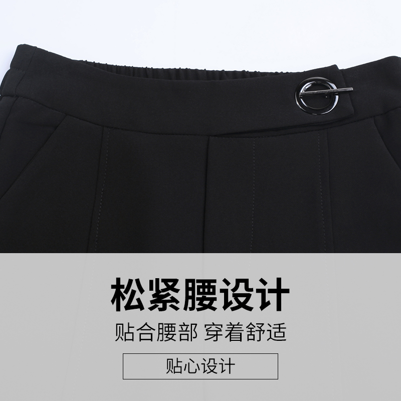 高腰微喇叭褲春夏棉麻女褲新款顯瘦黑色九分褲開叉休閑西裝褲