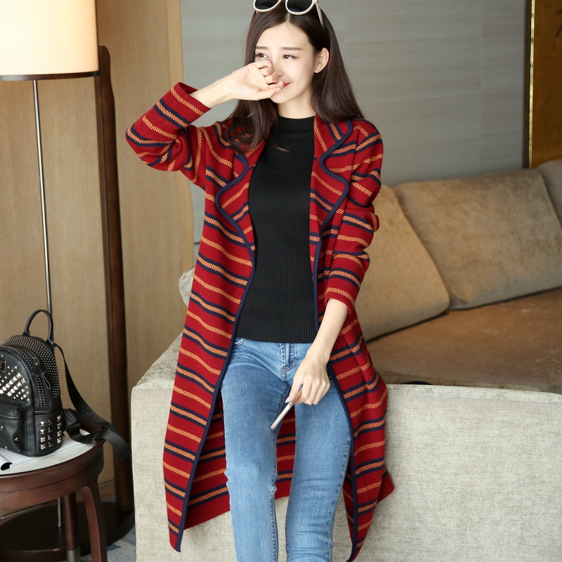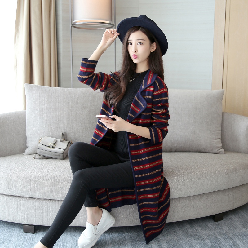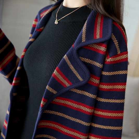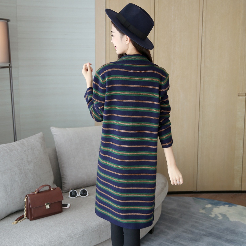 針織衫毛衣開衫披肩外套條紋開衫秋裝新款條紋寬松毛衣針織衫