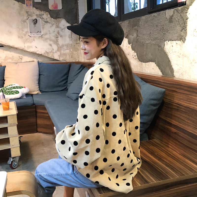 秋冬女裝2018新款燈芯絨寬松氣質波點襯衫時尚雙層領長袖外套上衣
