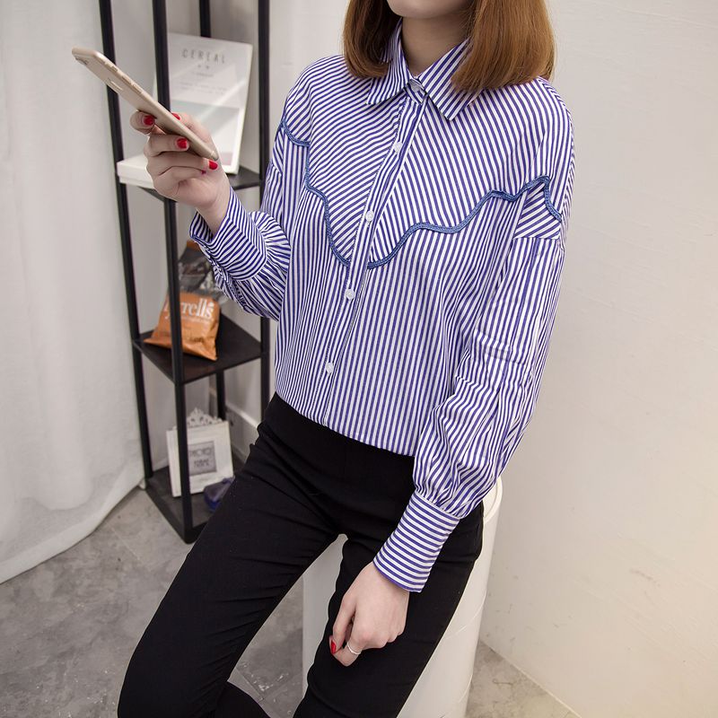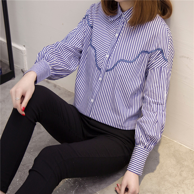 襯衫女長袖寬松韓版百搭休閑條紋襯衣女裝春裝新款潮學生上衣