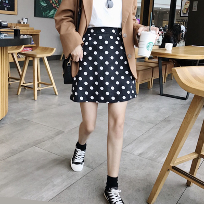 燈芯絨復古風波點A字半身裙子女秋冬裝新款韓版學生高腰顯瘦短裙