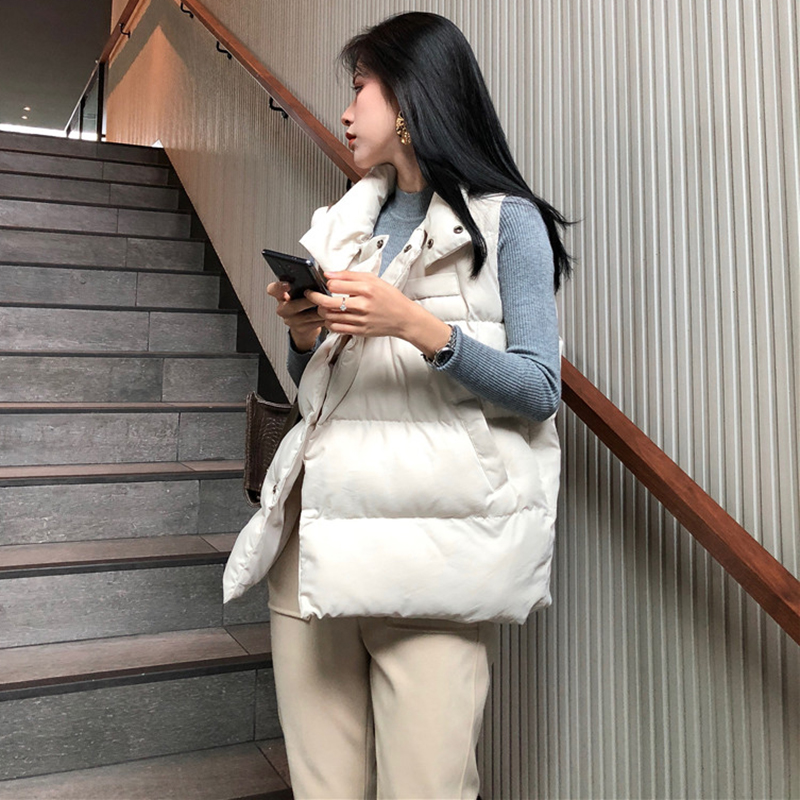 chic寬松顯瘦立領棉衣馬甲女秋冬裝2018新款韓版學生加厚坎肩外套