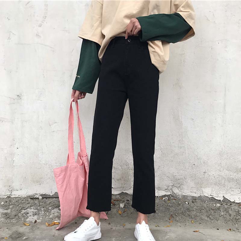 / 復古直筒休閑九分褲秋冬2018新款韓版顯瘦高腰學生寬松牛仔褲女潮