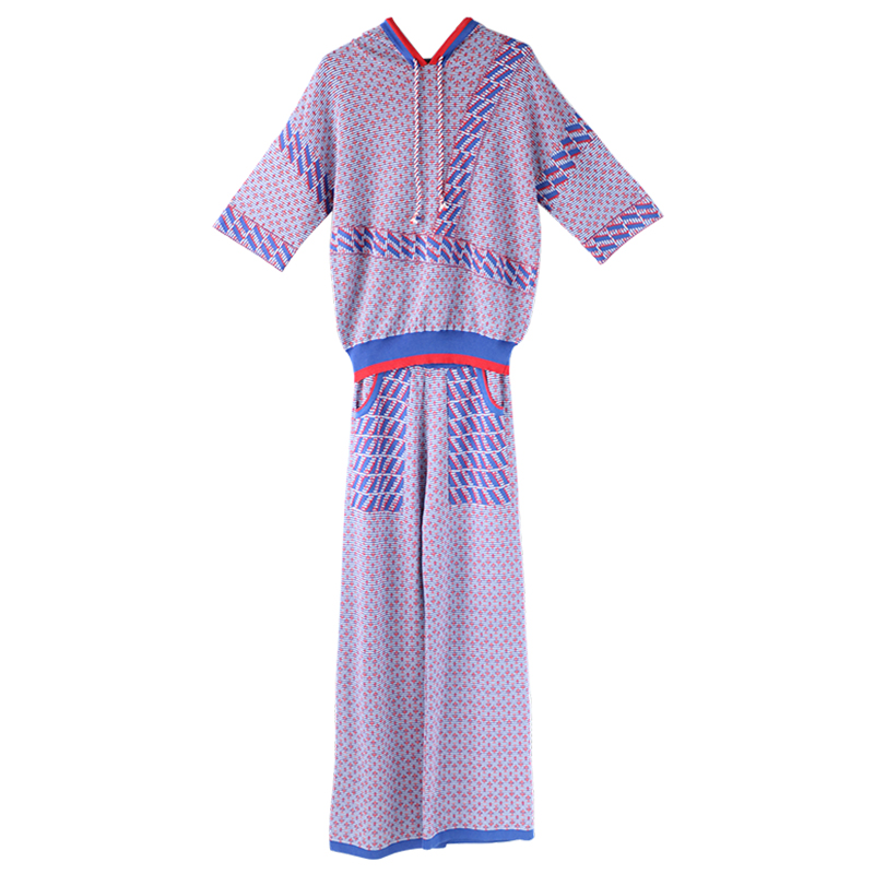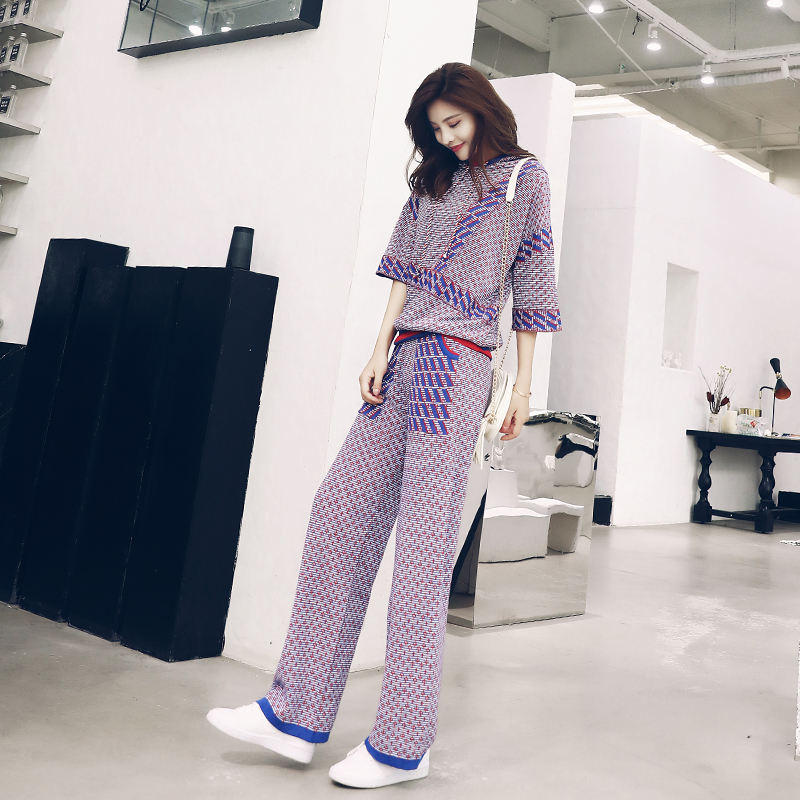 / 洋氣港味2018秋季新款網紅兩件套闊腿褲連帽休閑運動針織套裝女