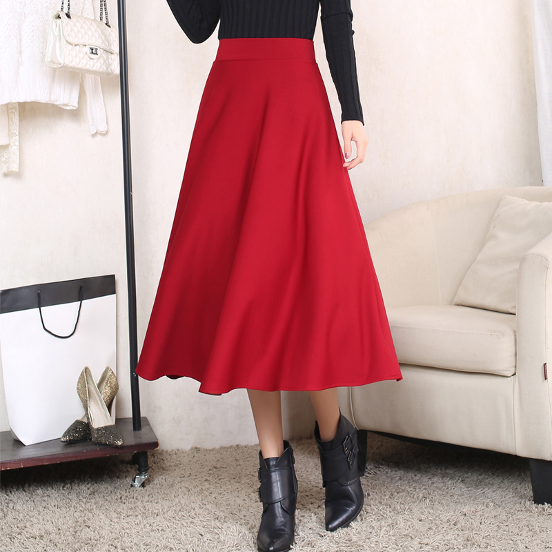/ 秋冬款中長款高腰半身裙蓬蓬裙a字中裙子彈力傘裙大碼長裙