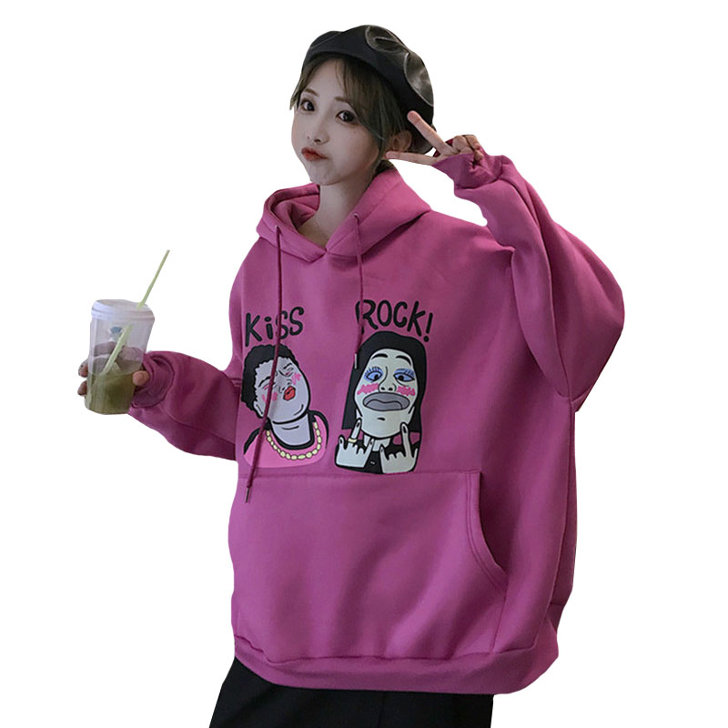 / 秋冬女裝韓版中長款原宿風加絨加厚搞怪卡通連帽寬松衛衣上衣外套