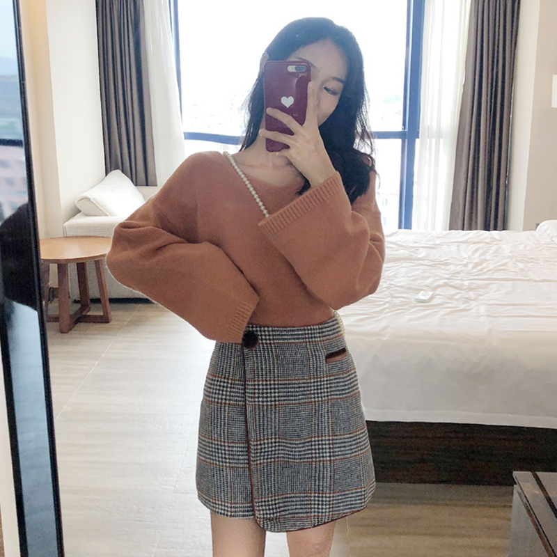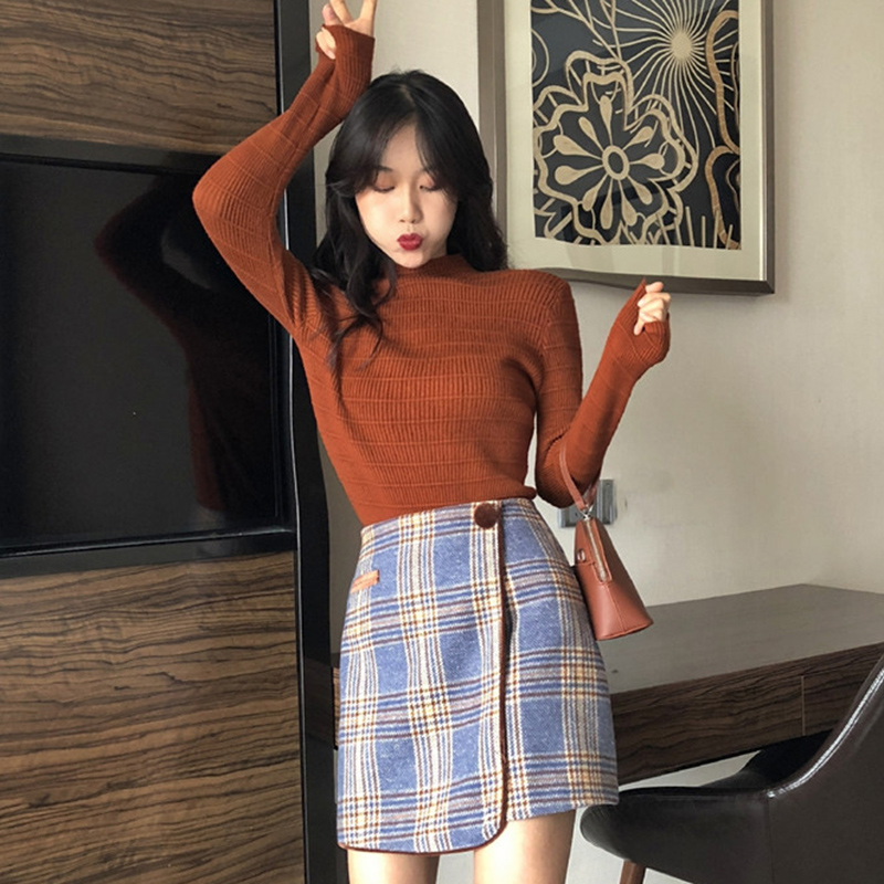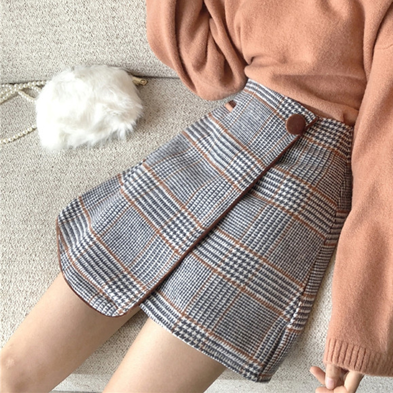 復古格紋裙子女秋冬2018新款毛呢短裙女學生a字裙ins超火的半身裙