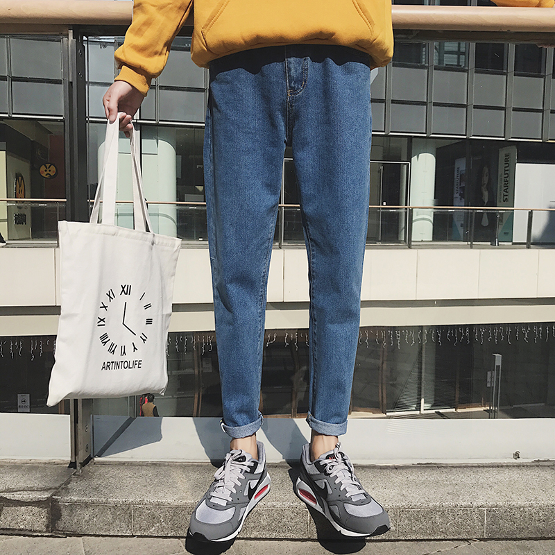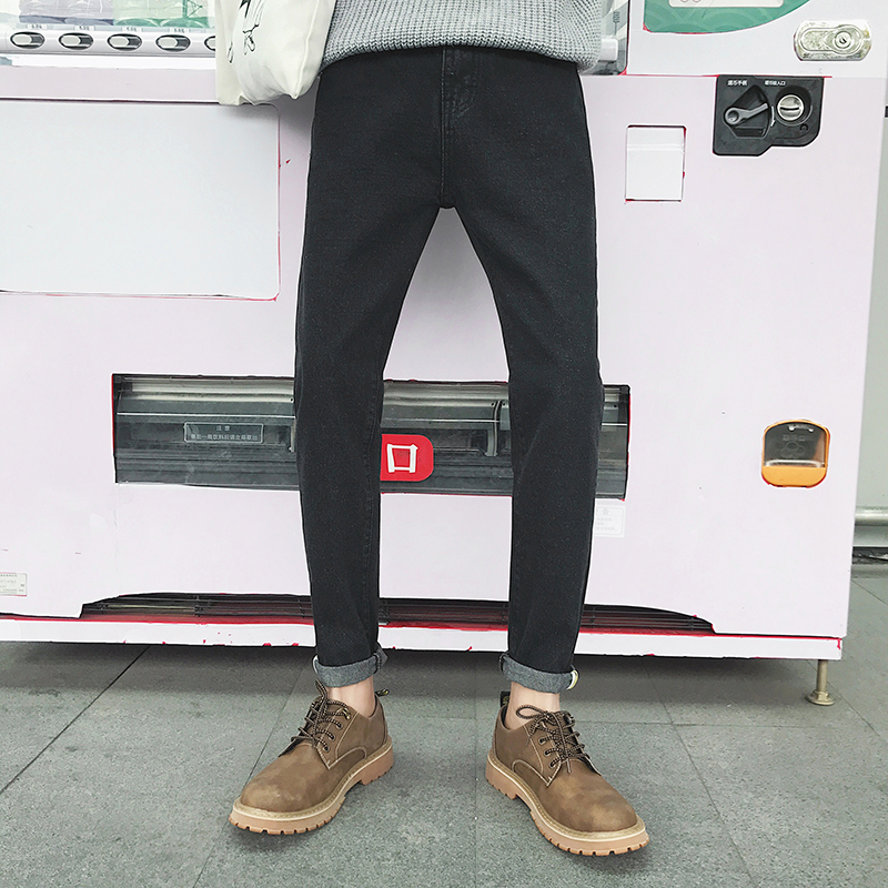 秋季九分褲新款牛仔褲男士修身韓版潮流褲子直筒褲小腳褲寬松男褲