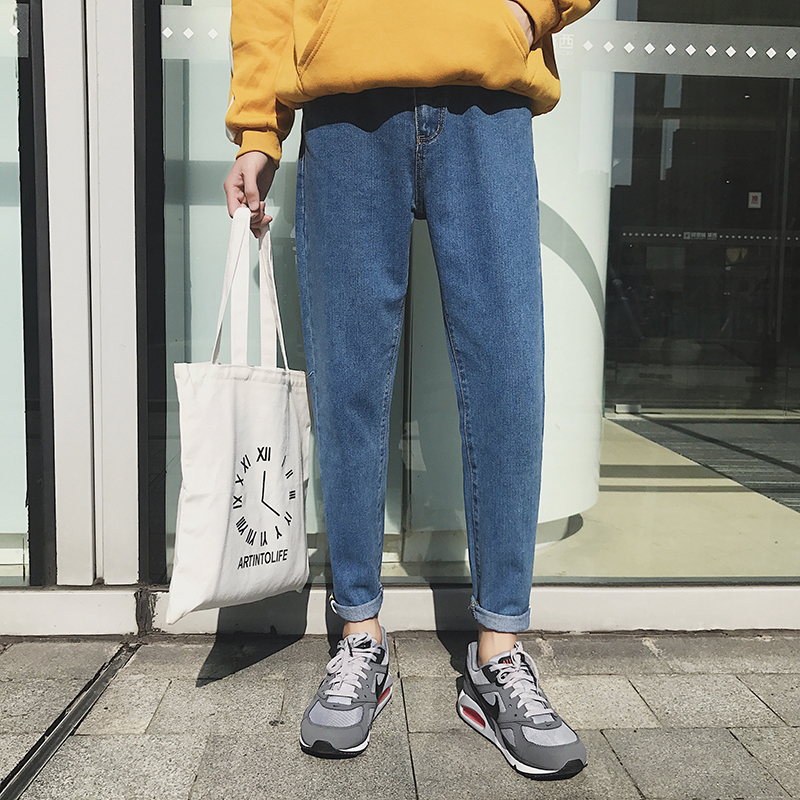 / 秋季九分褲新款牛仔褲男士修身韓版潮流褲子直筒褲小腳褲寬松男褲