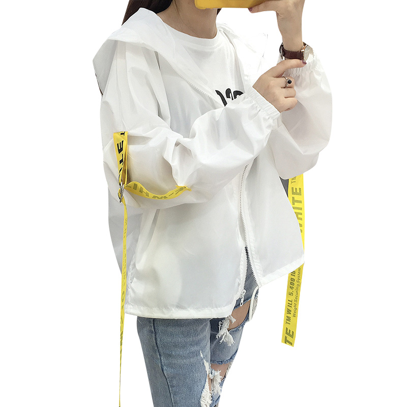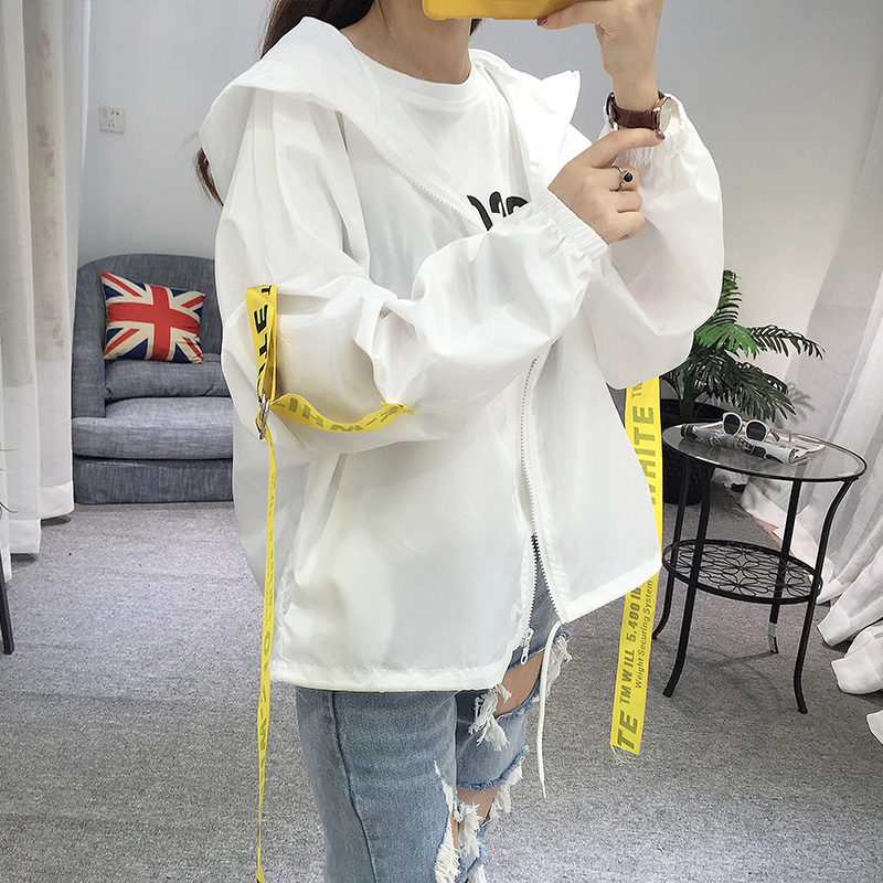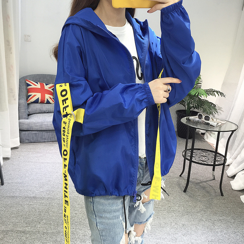 / 防曬衣服女春夏季韓版學院風休閑純色字母帶帽短外套 學生薄外衣