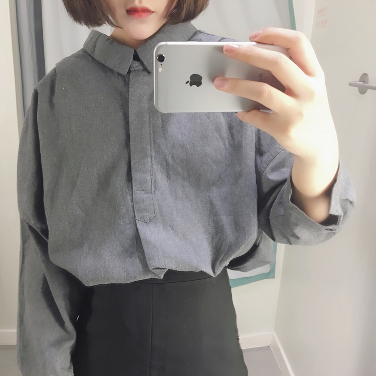 秋季女裝韓版chic復古港味簡約寬松系帶襯衫學生長袖休閑襯衣上衣