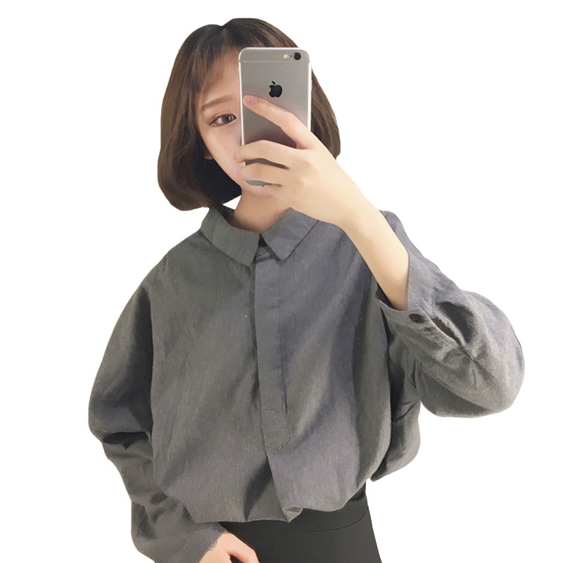 / 秋季女裝韓版chic復古港味簡約寬松系帶襯衫學生長袖休閑襯衣上衣