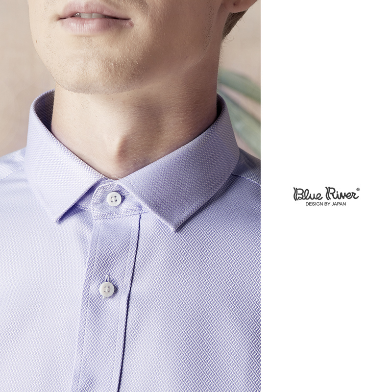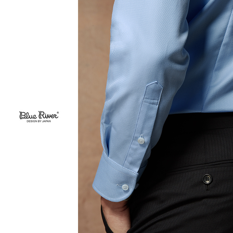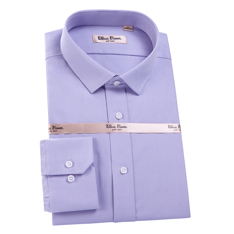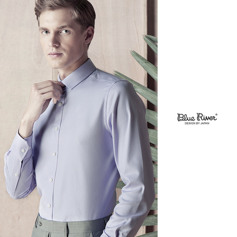 / BLUE RIVER/藍河男士商務正裝長袖純棉藍色時尚暗紋提花襯衫A
