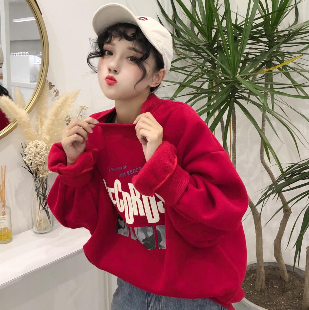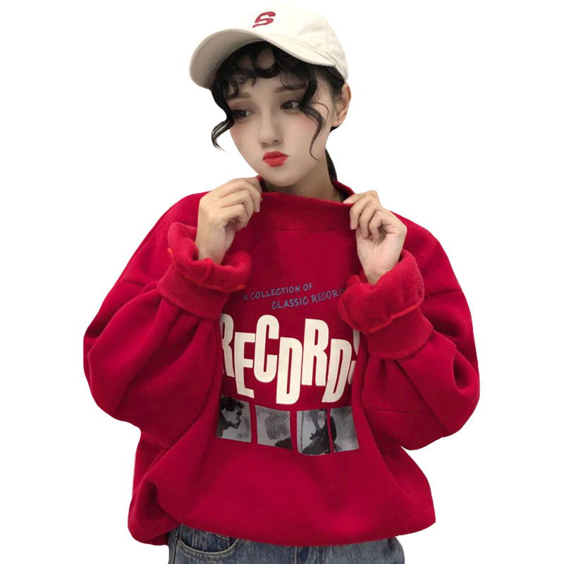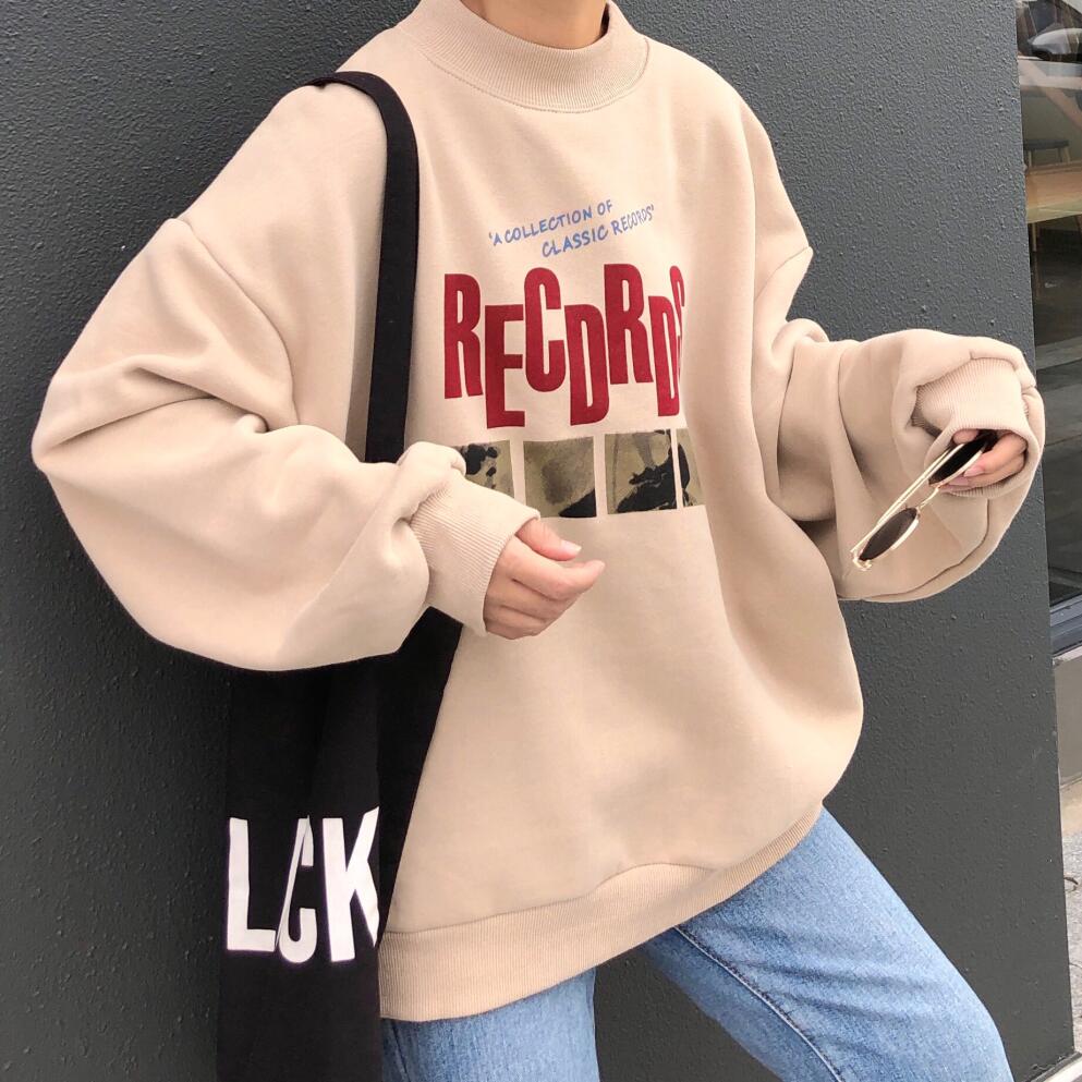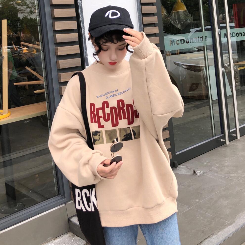 / 秋冬韓版BF風寬松高領原宿風字母加絨加厚套頭超火衛衣上衣外套女