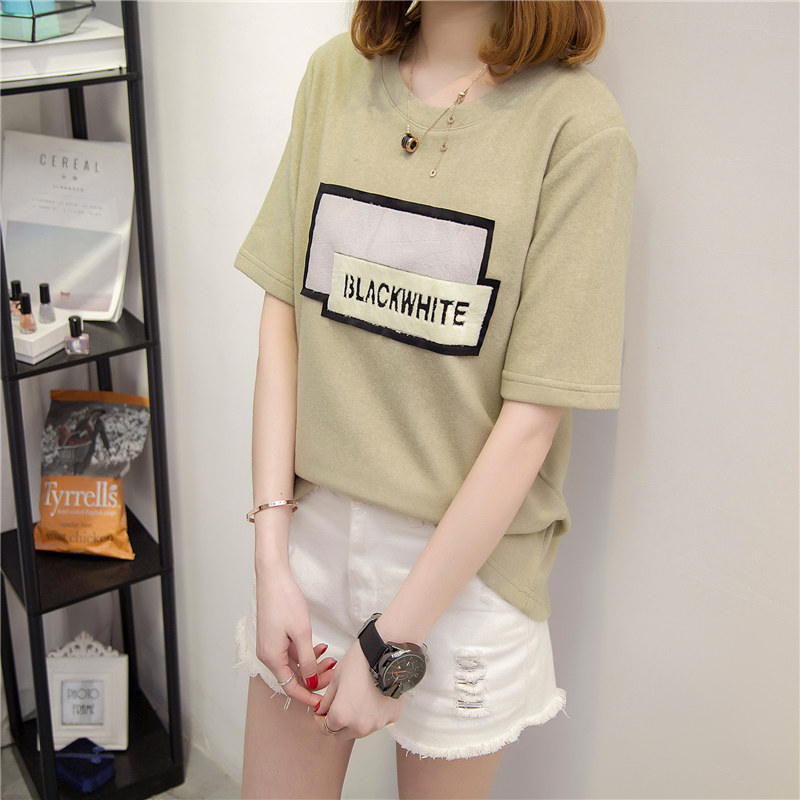 短袖上衣女夏新款潮女裝韓版寬松貼布百搭打底衫女春t恤小衫
