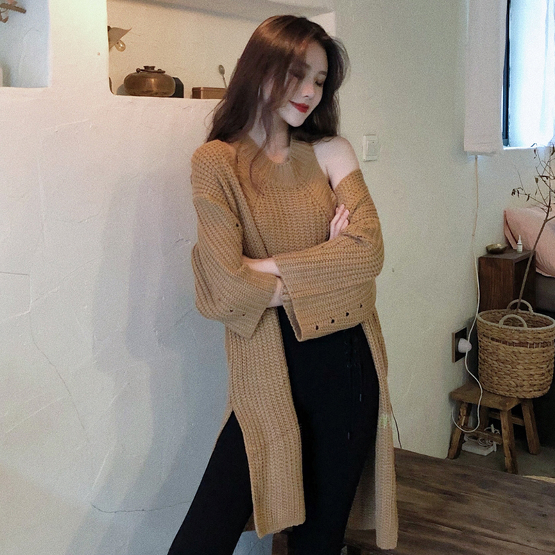 時尚套裝女秋冬2018新款短款掛脖針織背心中長款寬松長袖毛衣外套