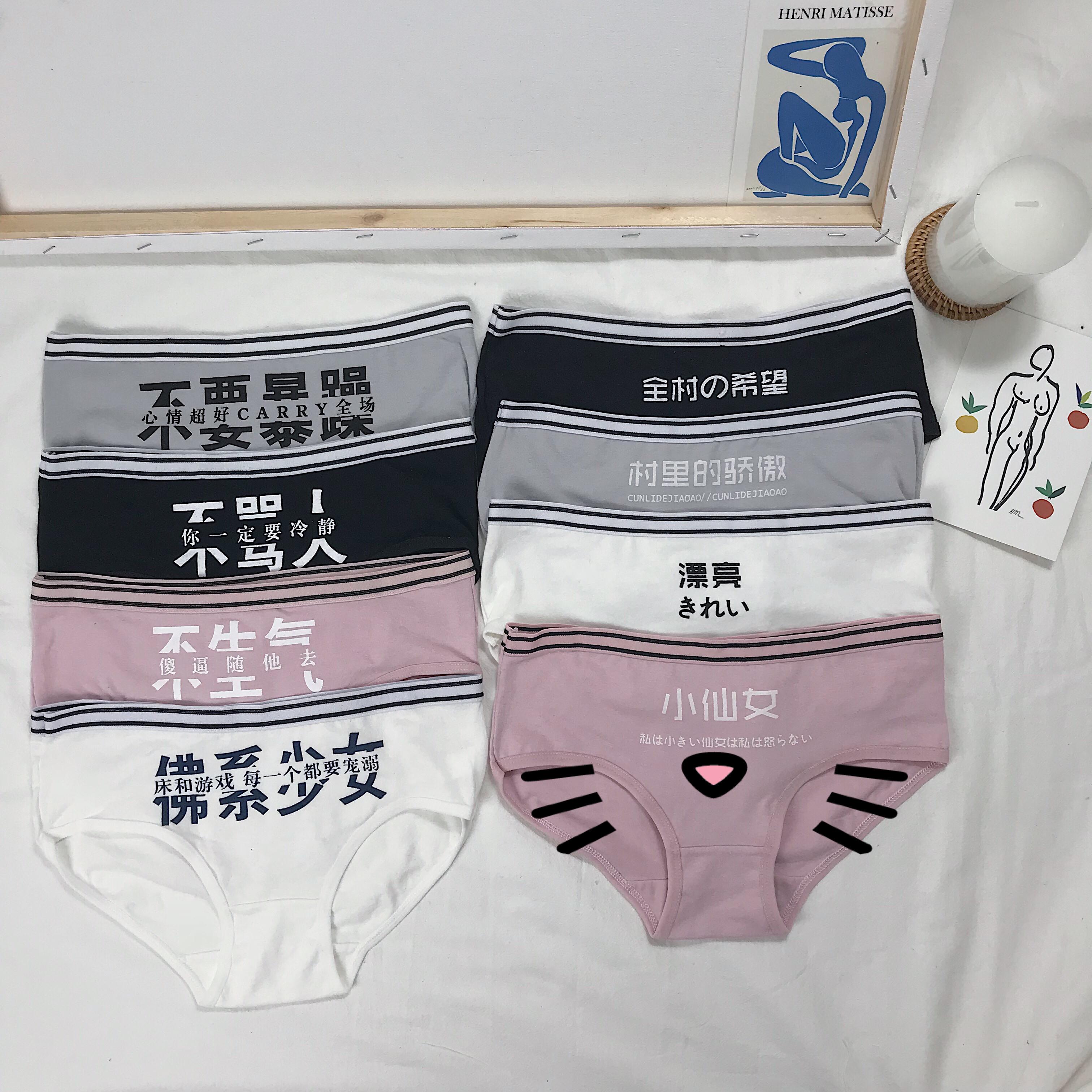 / 夏季甜美簡約文字小清新少女棉質親膚透氣無痕高腰三角褲內褲女士