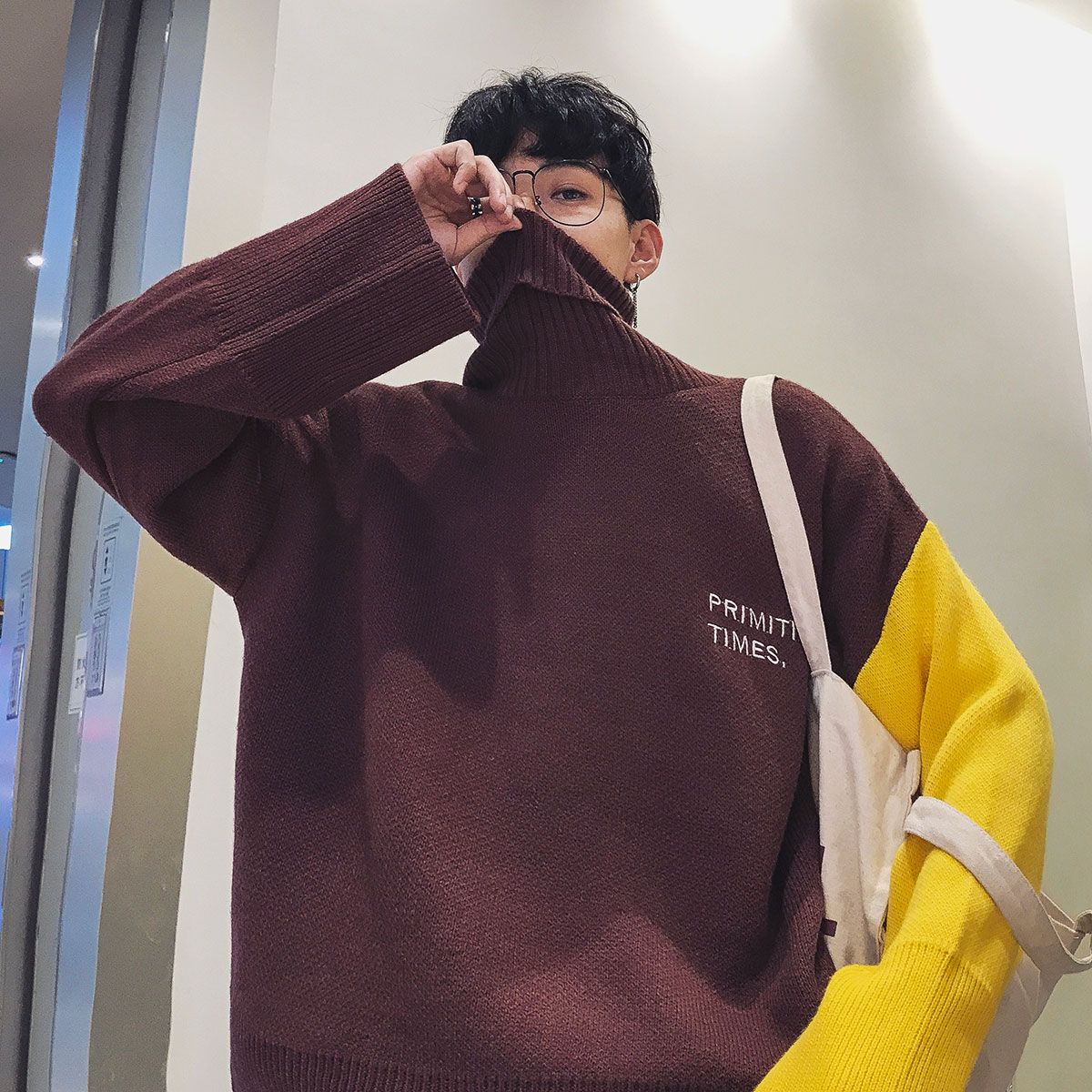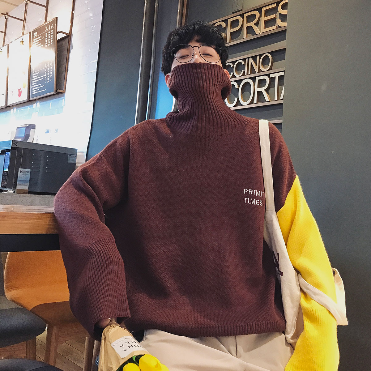 原宿風男士毛衣翻領寬松男裝港風秋季外套衣服韓版潮流圓領針織衫