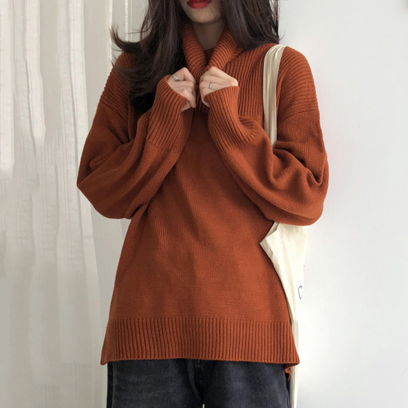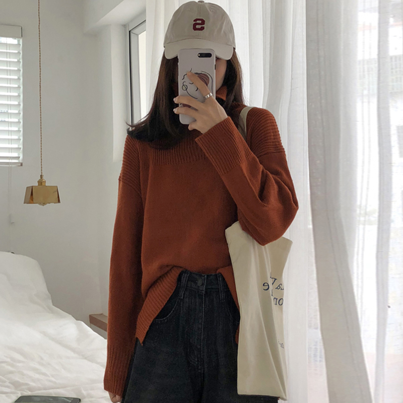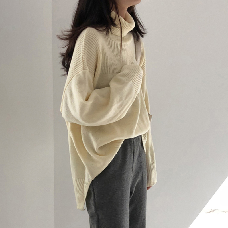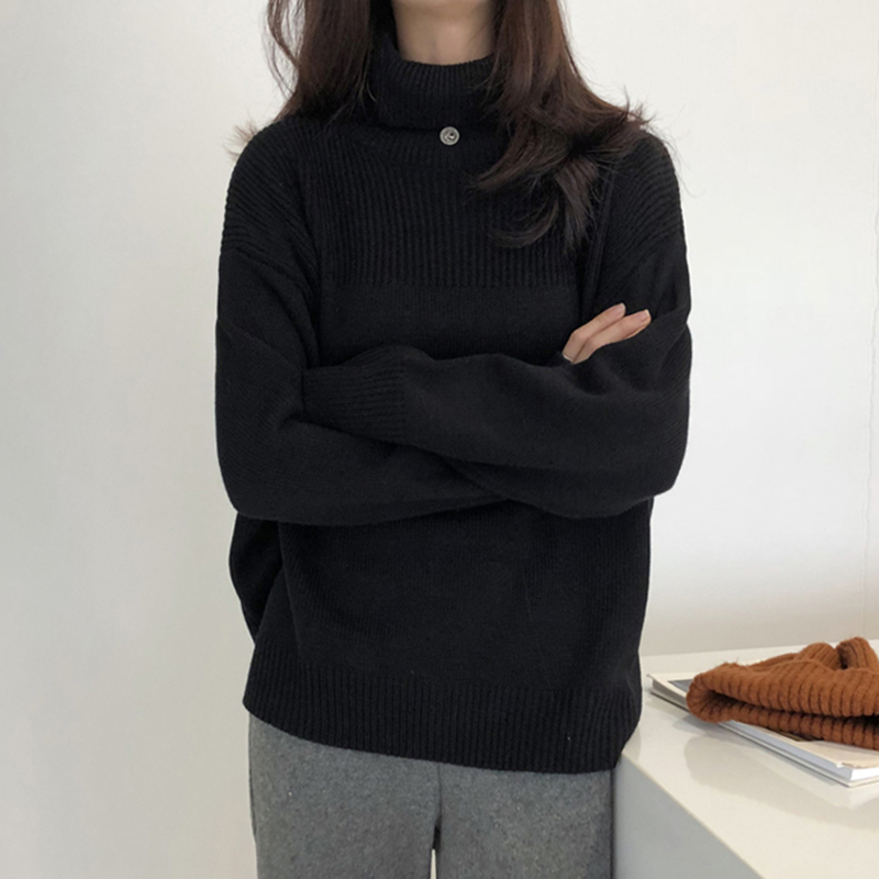 高領長袖針織毛衣女秋冬裝2018新款寬松慵懶黑色外套學生時尚上衣