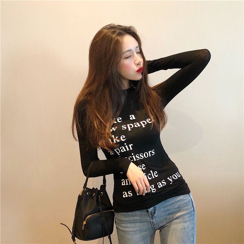 2018秋裝新款港味復古chic打底衫上衣女氣質顯瘦百搭印花長袖T恤