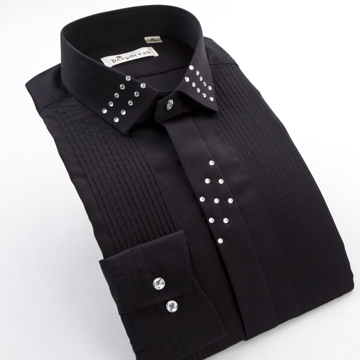 新潮男裝襯衫新款男士長袖襯衫黑色鑲鉆夜店修身型潮人焦點襯衣