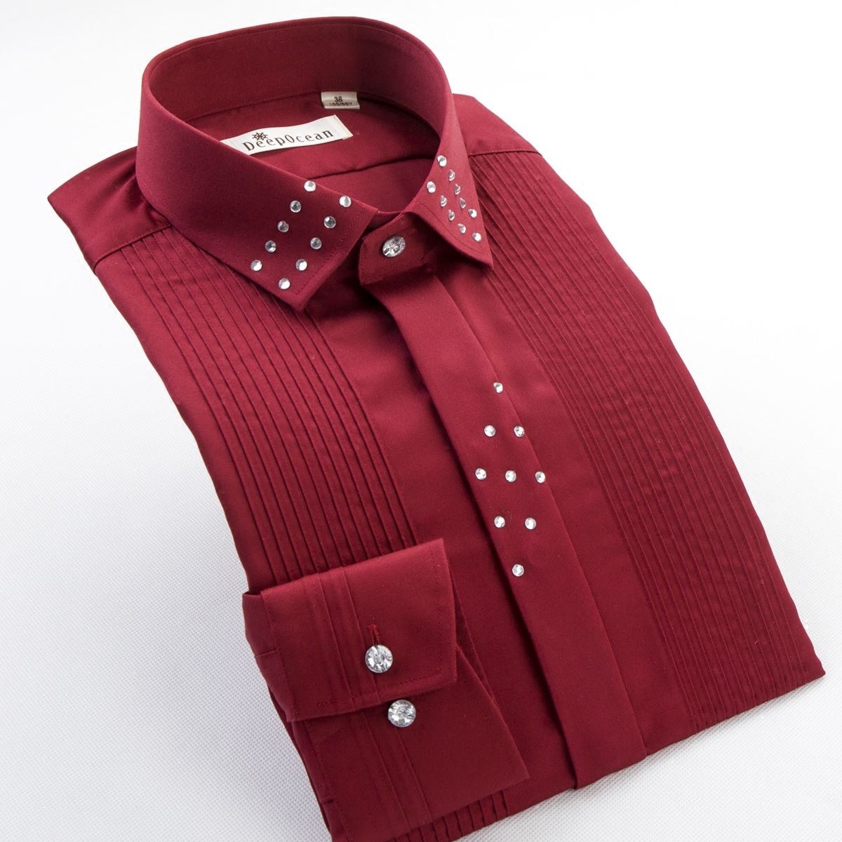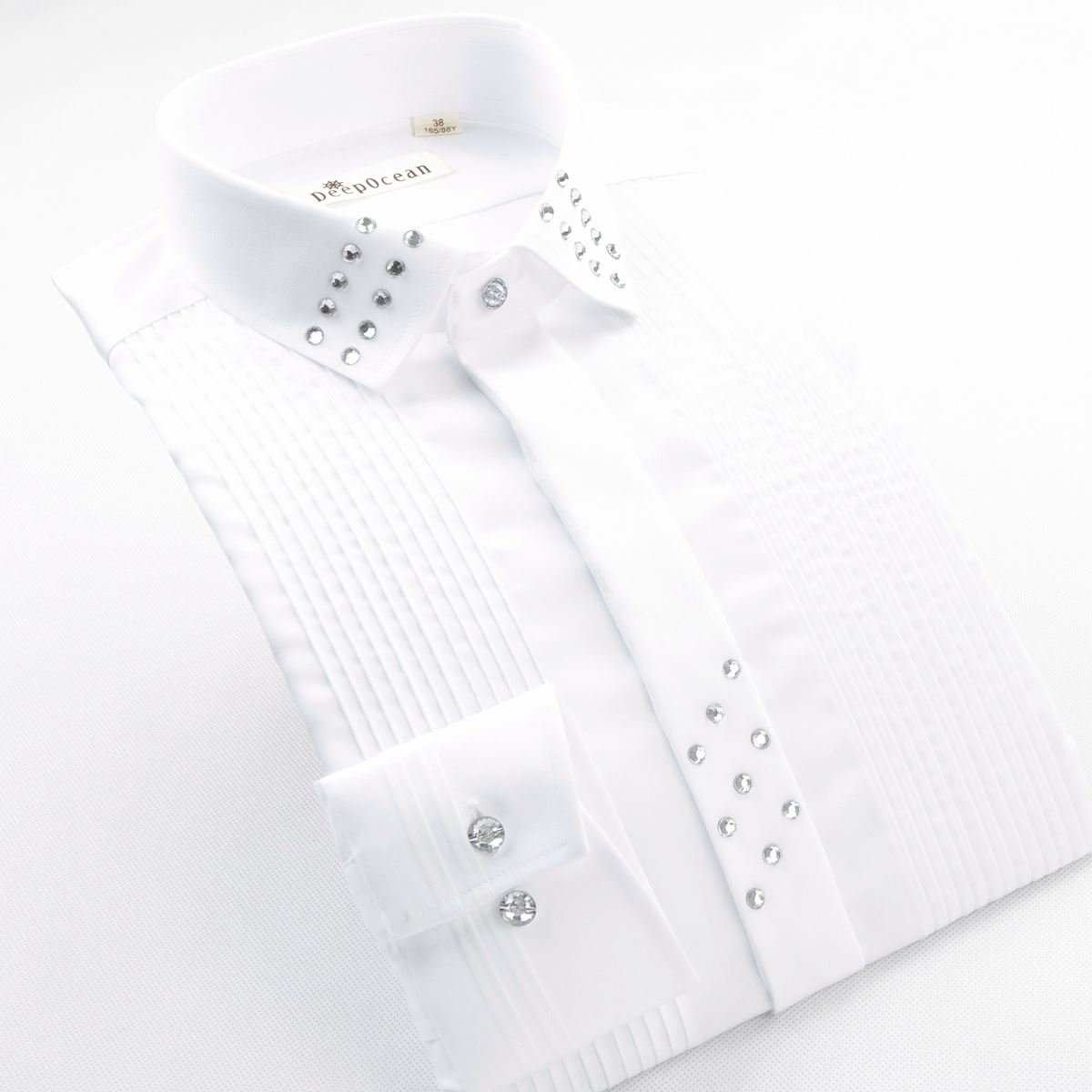 / 新潮男裝襯衫新款男士長袖襯衫黑色鑲鉆夜店修身型潮人焦點襯衣