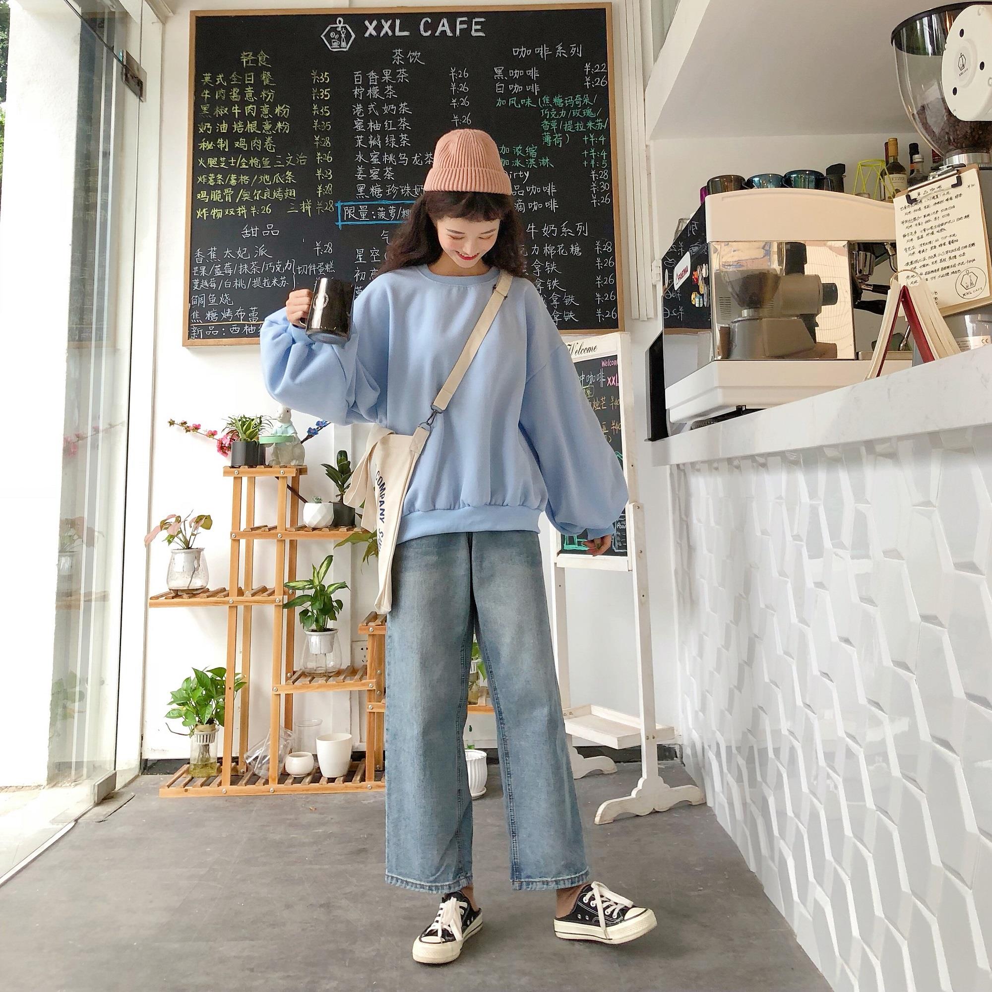/ 2018新款秋冬女裝韓版BF風寬松純色加絨加厚套頭超火衛衣上衣外套