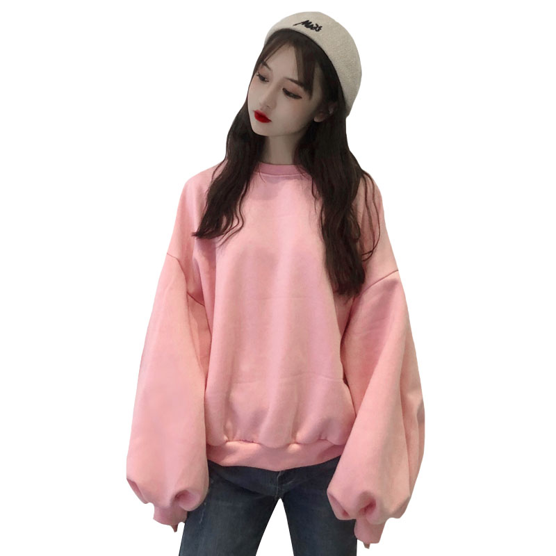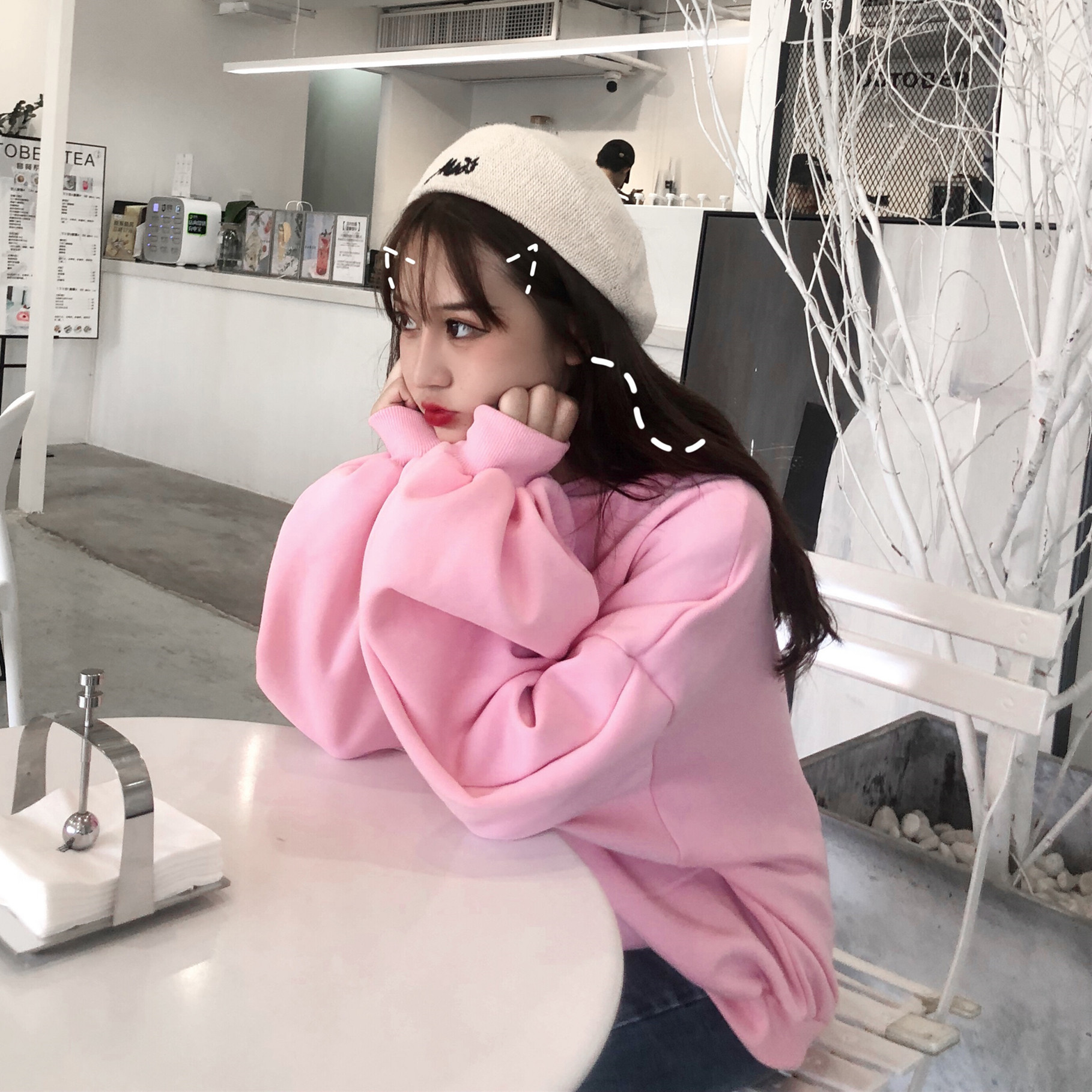 2018新款秋冬女裝韓版BF風寬松純色加絨加厚套頭超火衛衣上衣外套