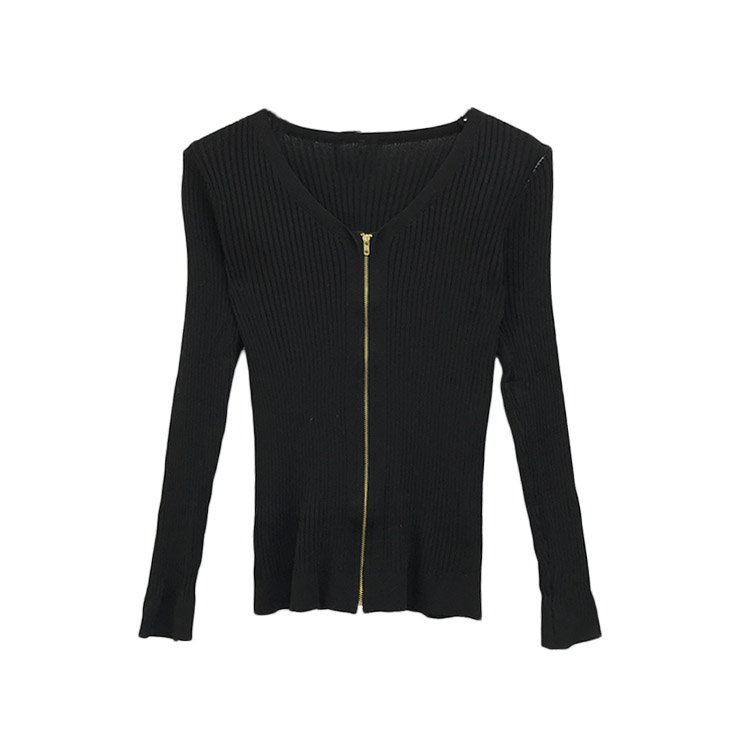 毛衣外套女韓版2018新款百搭V領拉鏈純色上衣修身短款長袖打底衫T