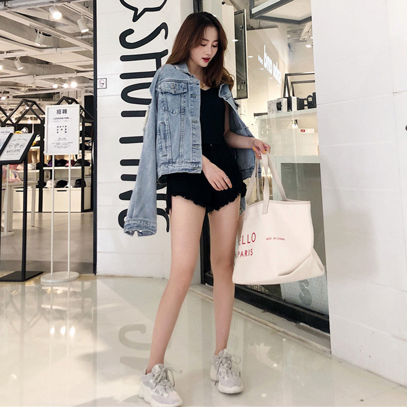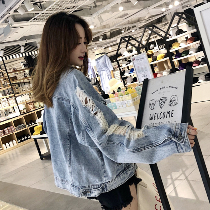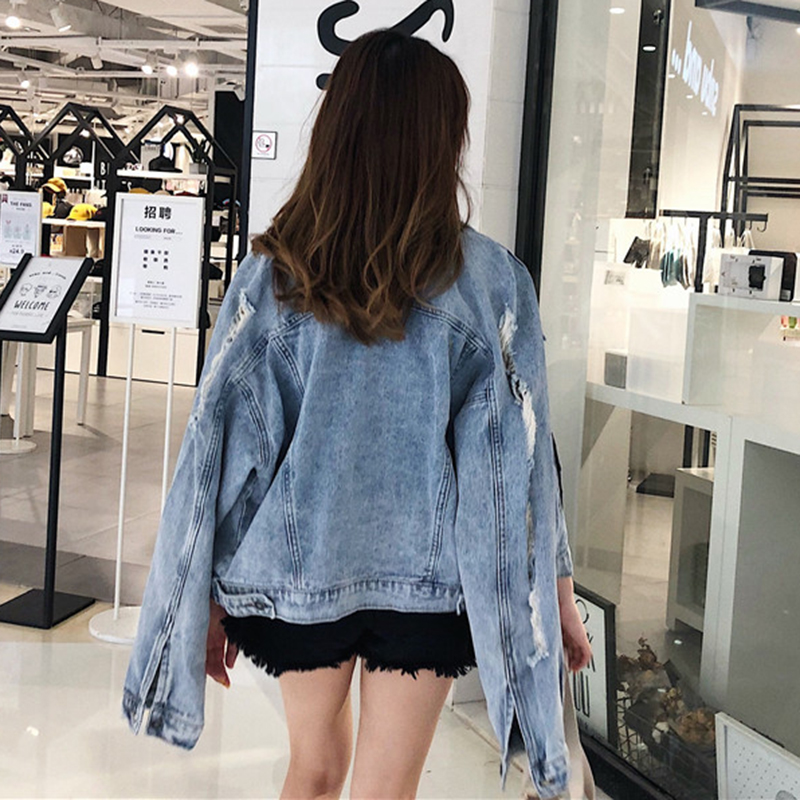 秋裝2018新款寬松破洞乞丐牛仔短外套女韓版學生蝙蝠袖夾克上衣潮