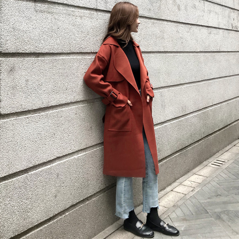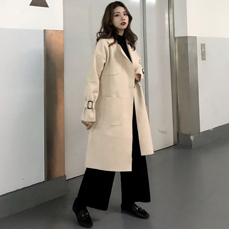 / 2018流行毛呢外套女秋冬裝新款赫本大衣寬松過膝開衫純色休閑上衣