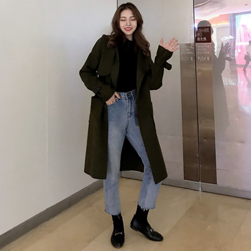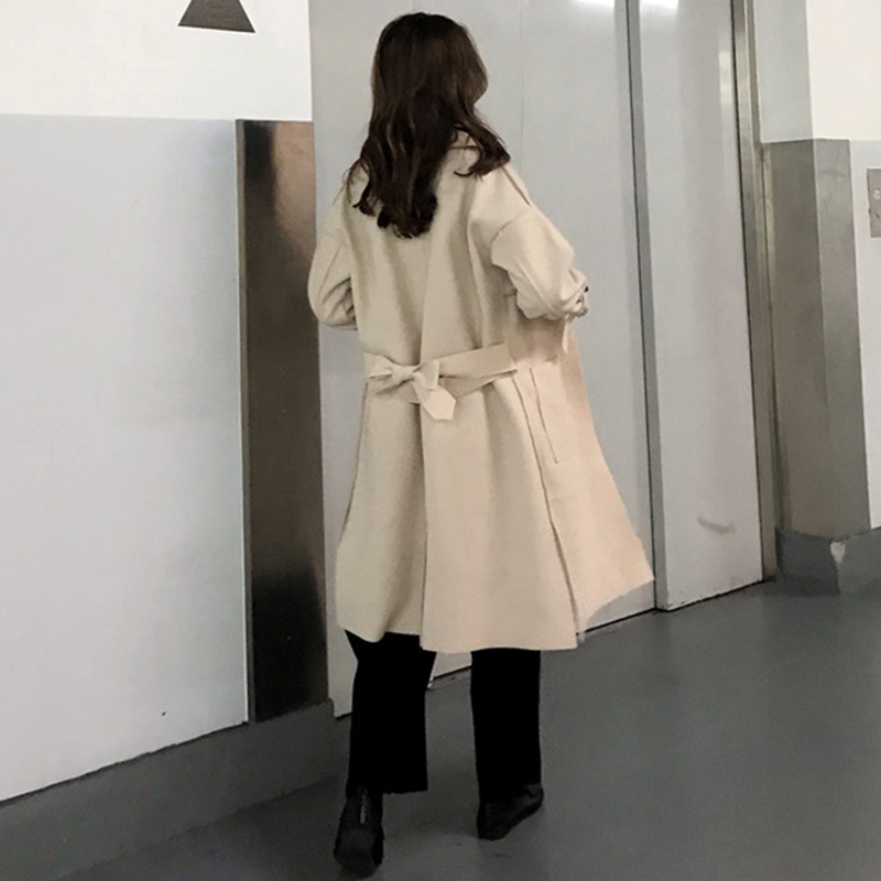 2018流行毛呢外套女秋冬裝新款赫本大衣寬松過膝開衫純色休閑上衣